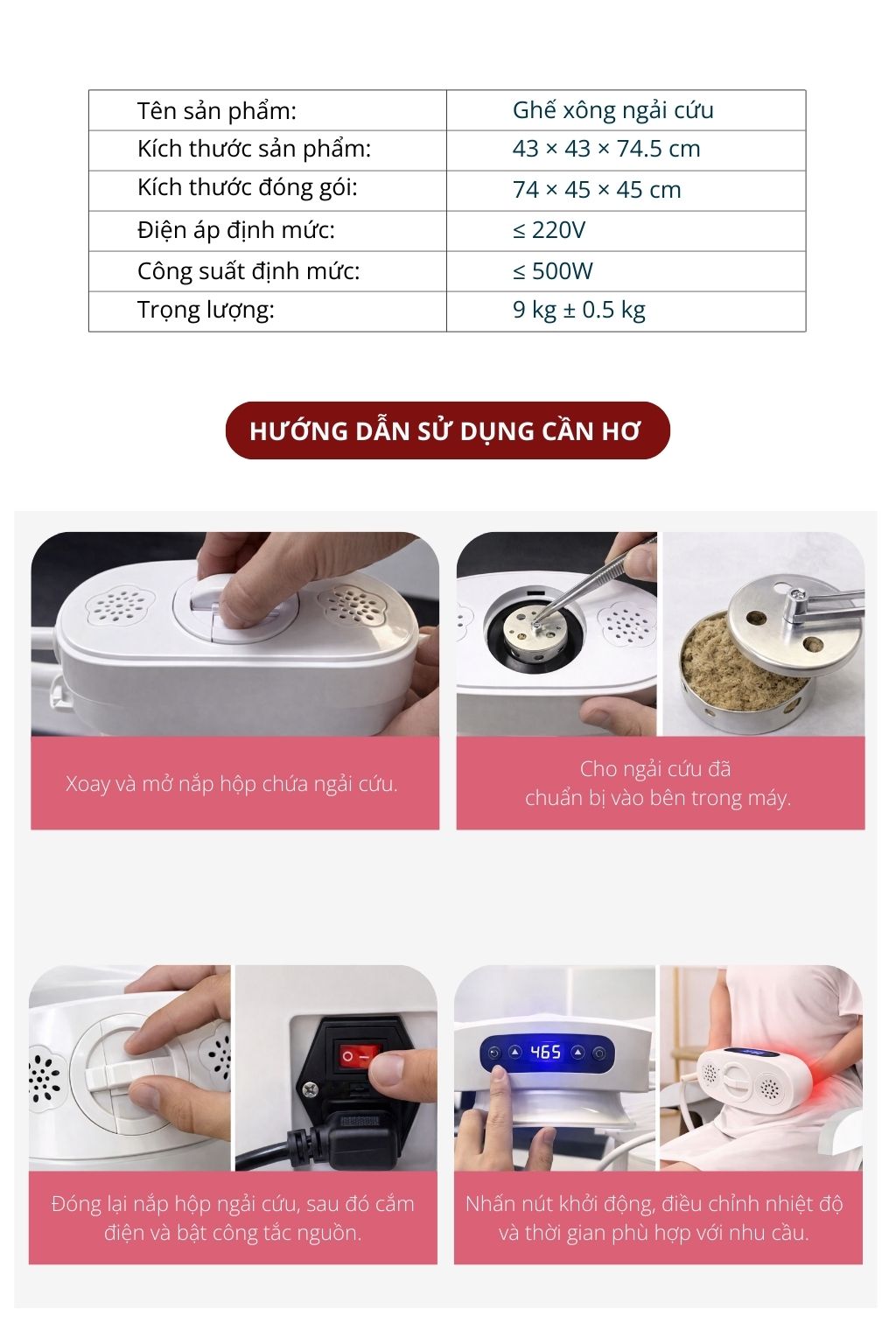 Máy làm nóng nhanh, mùi ngải cứu dễ chịu ba mẹ mình rất thích