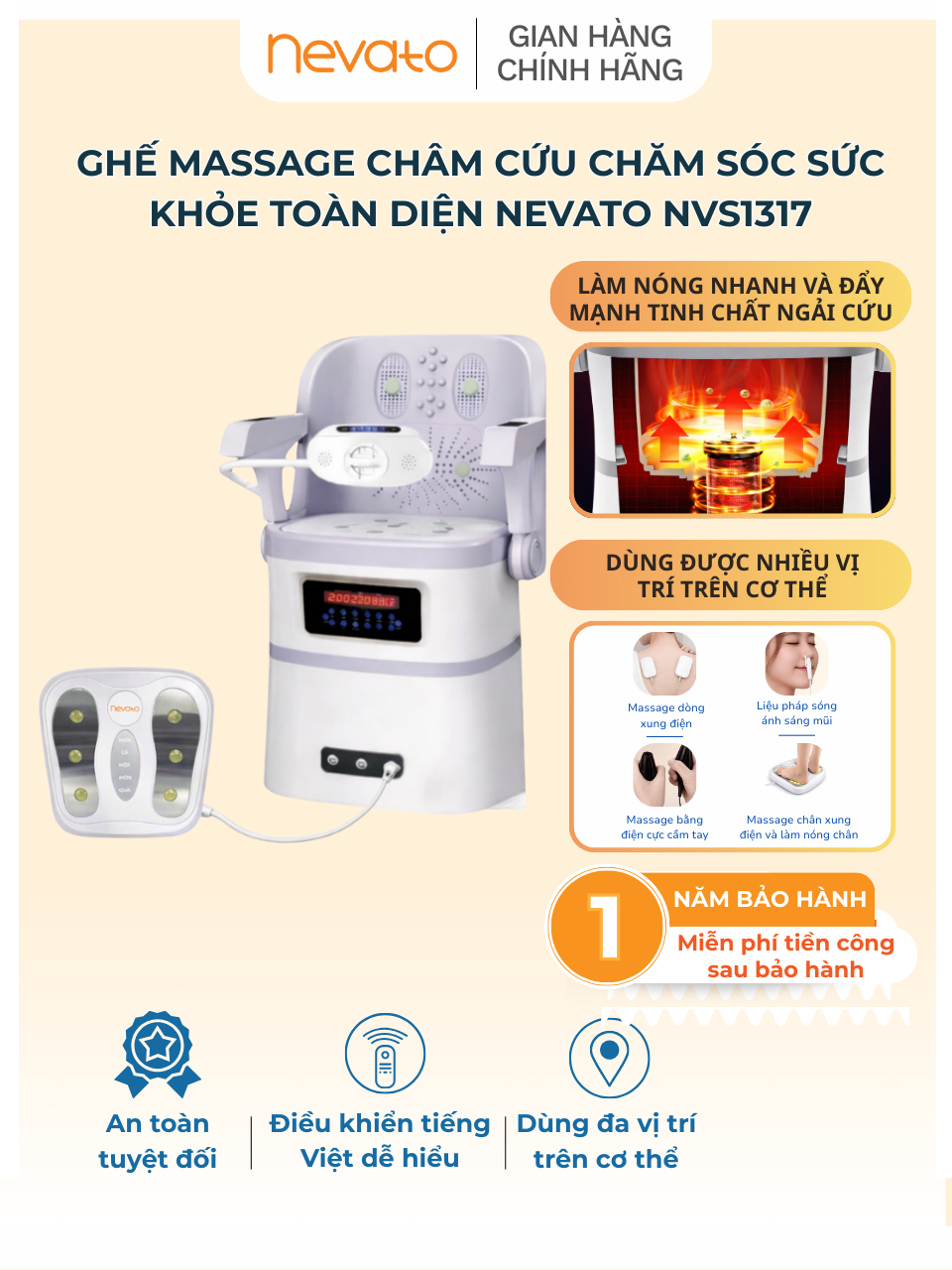 48 reviews for Ghế Massage Châm Cứu Chăm Sóc Sức Khỏe Toàn Diện Nevato NVS1317 Và Massage Xung Điện Chân Nevato NVE1310 Mini