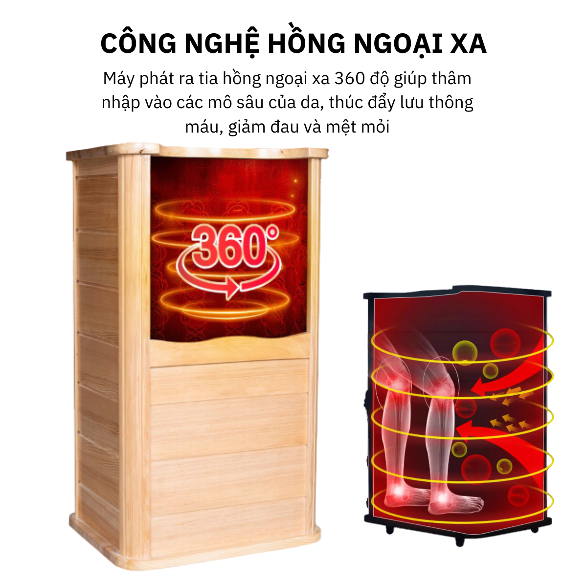 • Sử dụng công nghệ hồng ngoại xa 5 -15 micromet (Tia hồng ngoại tuyến xa hay còn được gọi là tia hồng ngoại, ánh sáng hồng ngoại làm nóng cơ thể từ bên trong, có nghĩa là cơ thể bạn sẽ được làm nóng trực tiếp bởi sóng ánh sáng xuyên qua da của bạn. Nó có tác dụng làm ấm cơ thể, chạm đến các cơ và dây thần kinh nên hoàn toàn an toàn khi sử dụng).